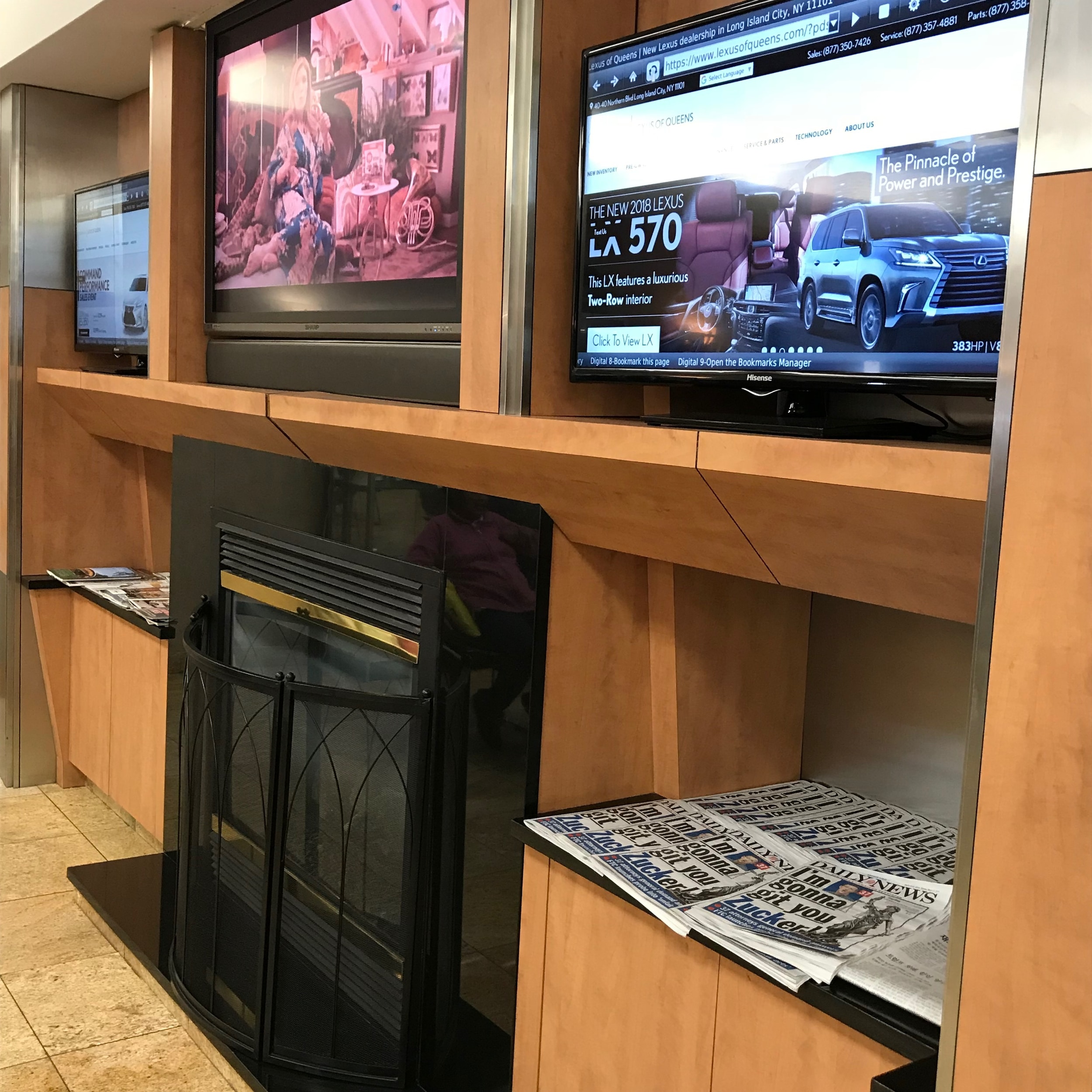Our customer lounge features comfortable seating, modern coffee station, and a fireplace to create a homier environment. We have an arrangement of favorite snacks also for your enjoyment. Please visit Lexus of Queens Today!